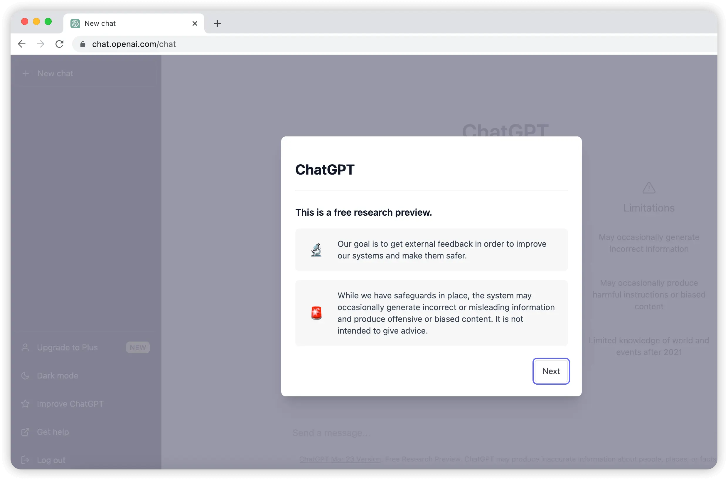 验证之后会自动跳转 ChatGPT 主界面了,跳转成功就表示你已经注册成功了哦!