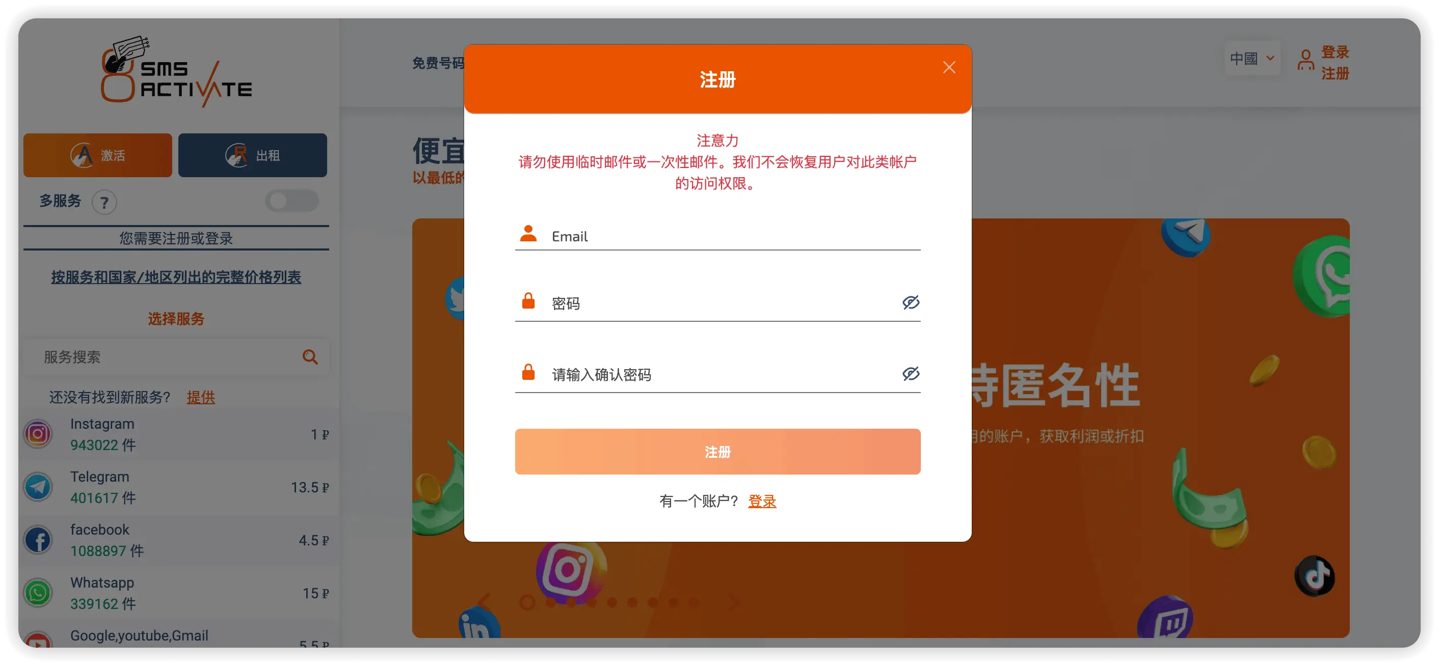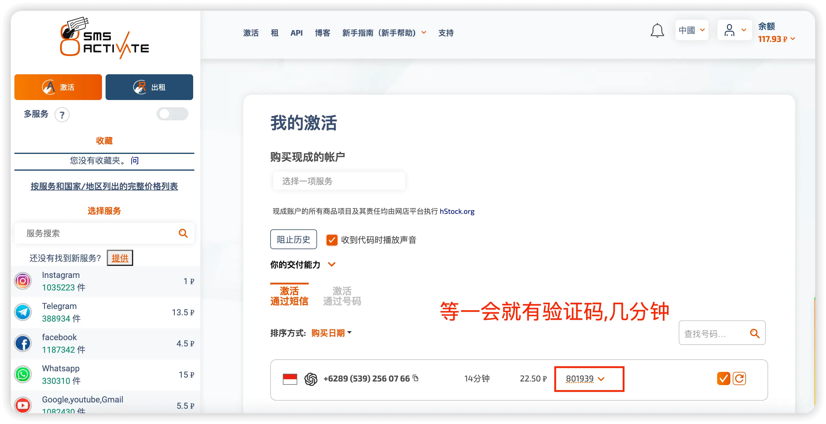 - 海外号码接收验证码,这里我们使用的接码平台是sms-activate