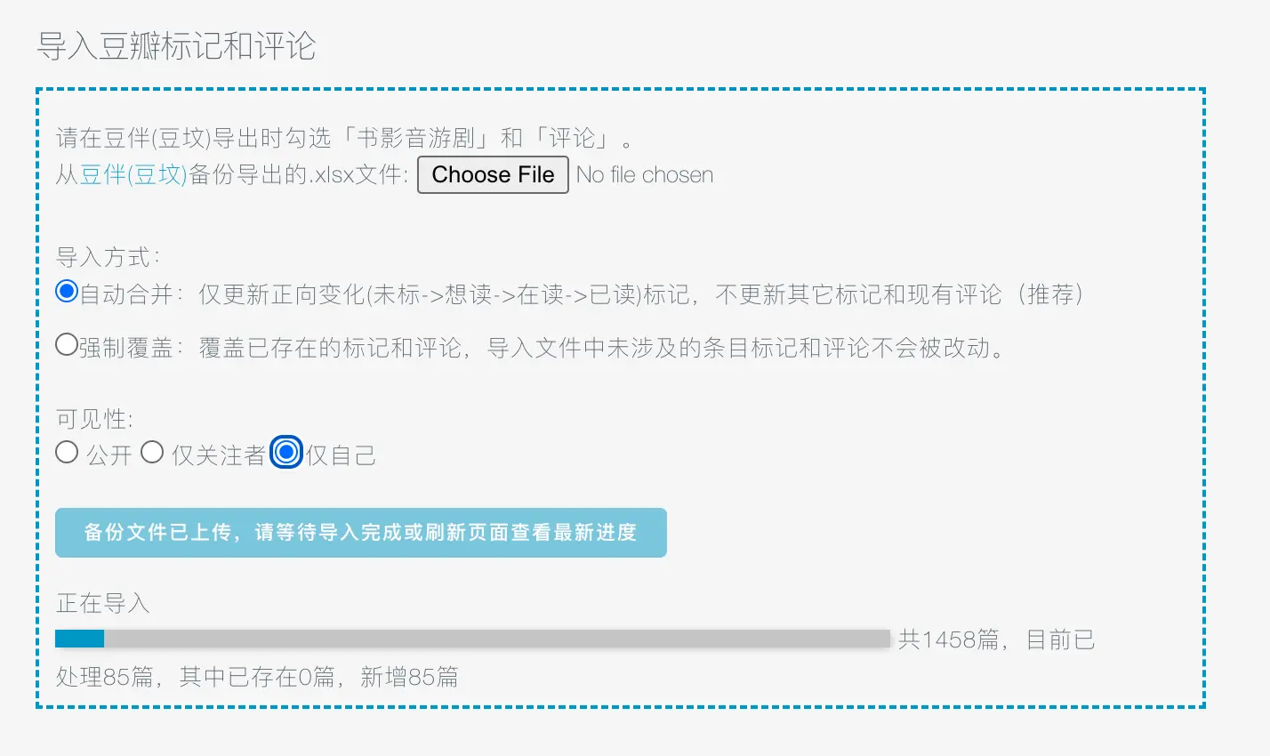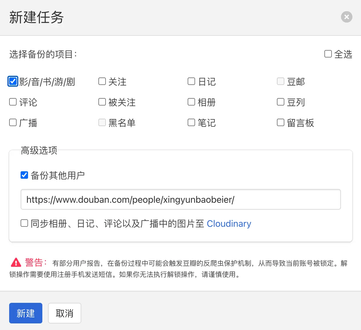 登录豆瓣或者将自己的主页地址填入到“备份其他用户”