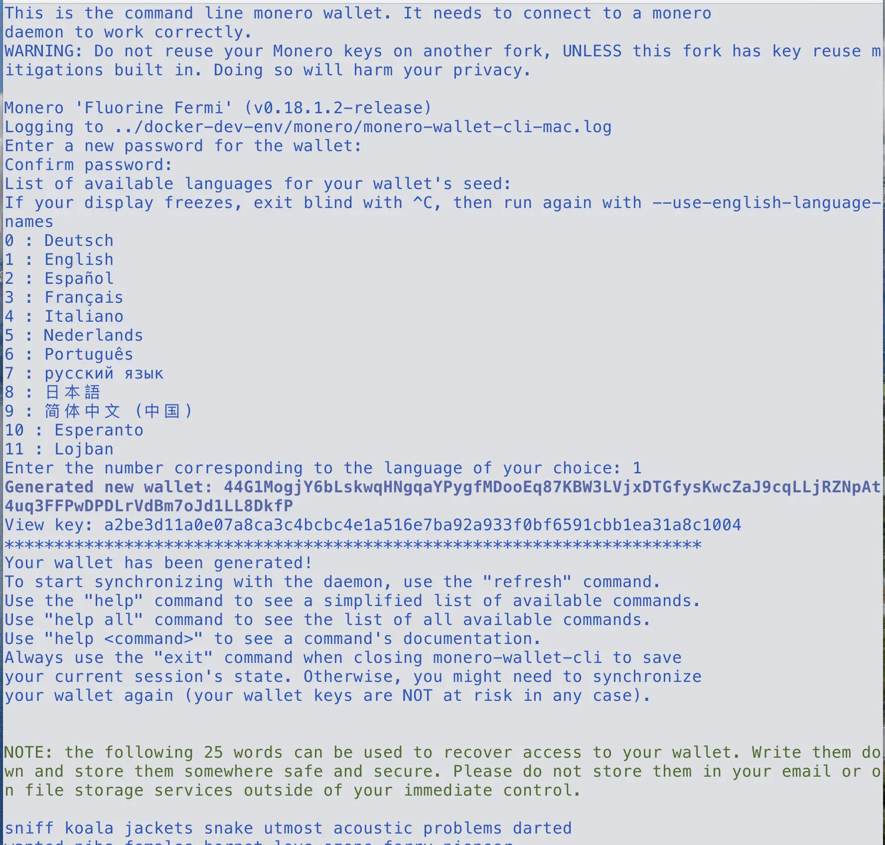 并将viewkey保存好,后边会用到。这里作为测试的钱包的View key: a2be3d11a0e07a8ca3c4bcbc4e1a516e7ba92a933f0bf6591cbb1ea31a8c1004
